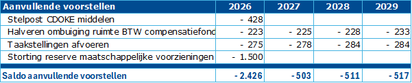 Er is in 2026 zelfs een extra storting in de reserve maatschappelijke voorzieningen van € 1,5 miljoen opgenomen ten behoeve van de investeringsopgave.