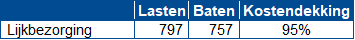 In de Nota Lokale heffingen 2019 is voor de lijkbezorgingsrechten een bandbreedte in kostendekking vastgesteld tussen de 70% en 80%. In het bestuursakkoord is de keuze gemaakt om jaarlijks een extra verhoging van de kostendekking van 5% toe te passen. Dit resulteert voor 2026 in een kostendekkingspercentage van 95%. Vanwege iets lagere lasten moeten de lijkbezorgingsrechten is een verhoging met de index van 2,5% toereikend om het percentage van 95% te bereiken.